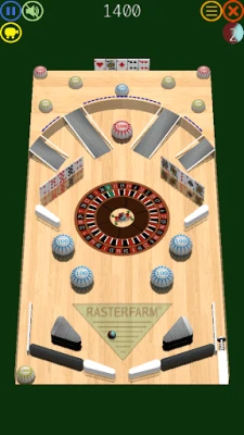 A roulette wheel is in the center of the table. And should a ball pass-through '0', a free-ball emerges. And there is no-limit to the number of balls on the table!