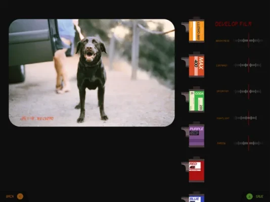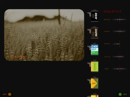 - After snap photo you can adjust and develop film photo by luzmo develop film function