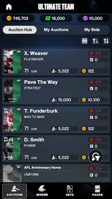 - Ultimate Team Management: Adjust your lineup, view and bid on auctions, sell or trade player cards, open packs, and complete sets to optimize your team.