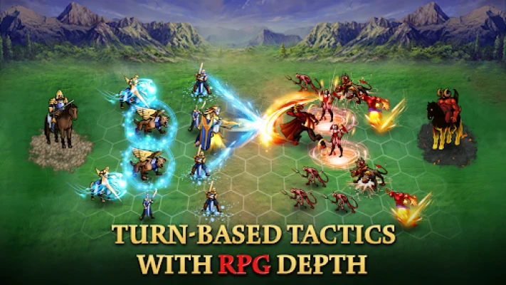 Duel player in epic strategy battles, play epic heroes and magic. Collect heroes, upgrade units and explore the new world. Your enemy is one of the fantasy factions: unlimited Dungeon creatures from abandoned caves, mighty dragons, and Minotaur.