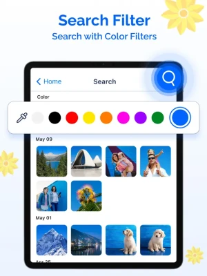 Picture search is made easy with location and color-based photo search in MagicAI Gallery App. Easily browse your picture with a color-based picture filter.