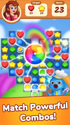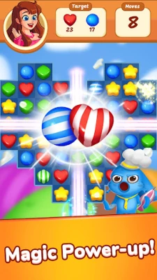 🍭 Various power ups(Stripped Candy Bomb, Puff Cake Bomb, Rainbow Candy, Splash Candy and Paper Airplane) .