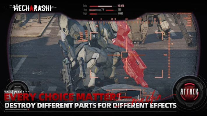 "The hit points of different mecha parts are calculated separately in battle, allowing for individual part destruction. This feature opens the doors to a world of infinite strategic possibilities. Destroying the torso, the part with the highest hit points, will directly neutralize the target, while breaking the arms or legs will impair weapons and mobility. Your every choice must be considered in advance, based on the current situation on the battlefield.