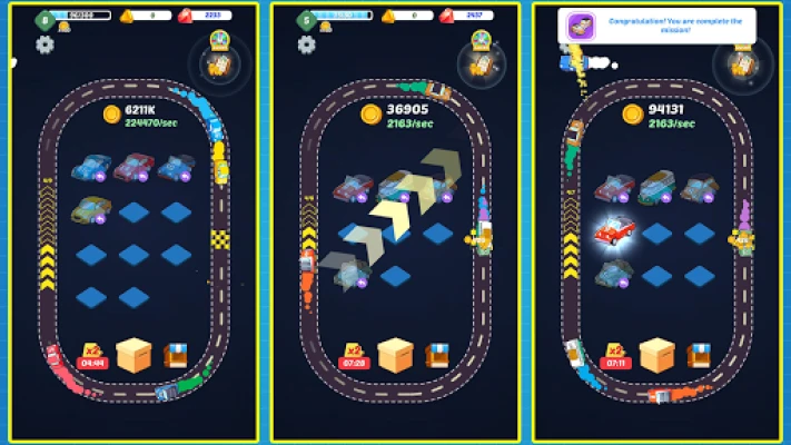 โข Merge: Drag and drop identical cars to merge them into a superior one.