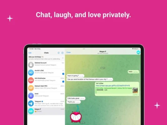 It's the Telegram you love, topped with maximum security. Keep your chats private, from everyone!