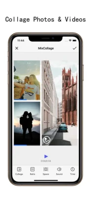 You can collage pictures, videos, or videos and pictures with the following results:Picture + Picture = PictureVideo + Video = VideoPicture + Video = Video