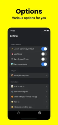 - There are many people who don't want the timestamp photo to be saved in the album, so I added an option. If you turn off the option in Settings, it will only be saved in the app.