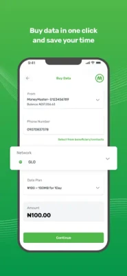 You can purchase airtime for any mobile network operator in Nigeria and buy data packs directly from the app. We provide a pop-up menu for easy selection of data bundles for each operator.