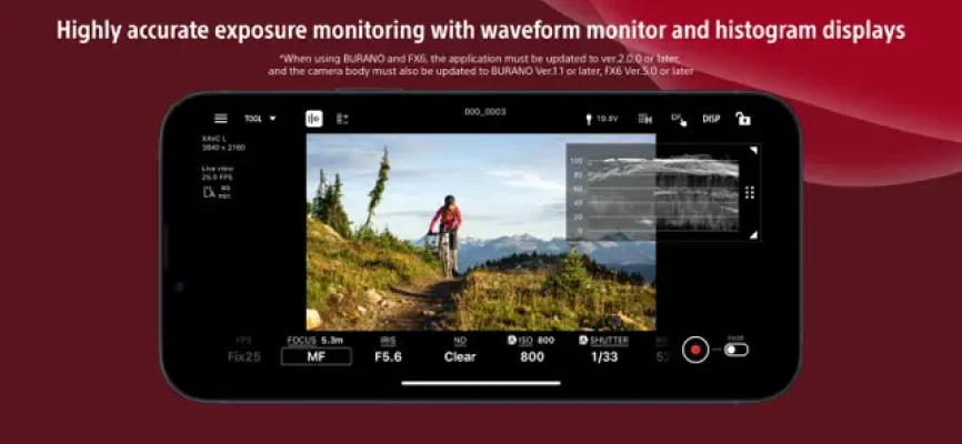 * When using BURANO or FX6, the application must be updated to Ver. 2.0.0 or higher, and the camera body software must be updated to BURANO Ver. 1.1 or higher or FX6 Ver. 5.0 or higher.