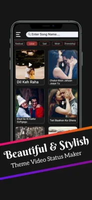 Full Screen Video Status : On public demand, you can make full screen video status maker and half screen video status its depend your selection of photos.