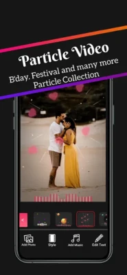 You can create animated Photo Video Maker with Beat wise particles effects with your favorite song track.