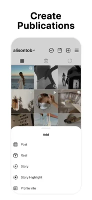 Compatible with various types of publications: posts, stories, reels, carousels, grids, highlights.
