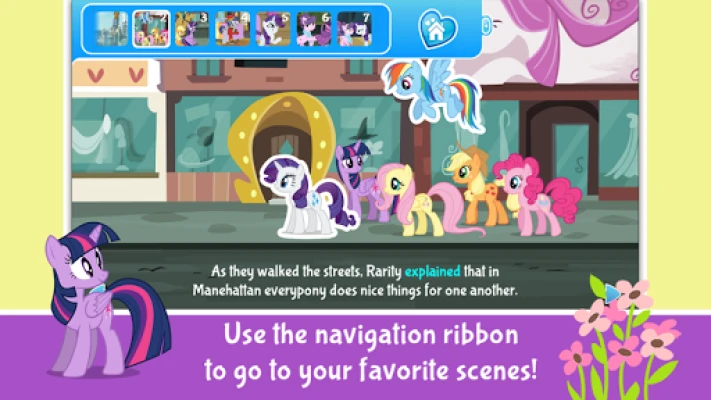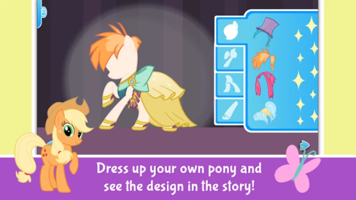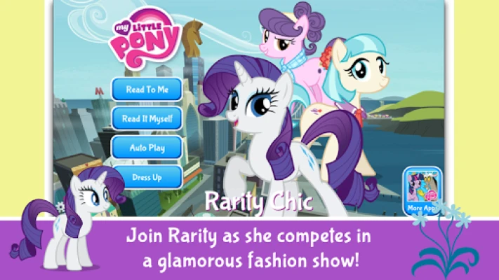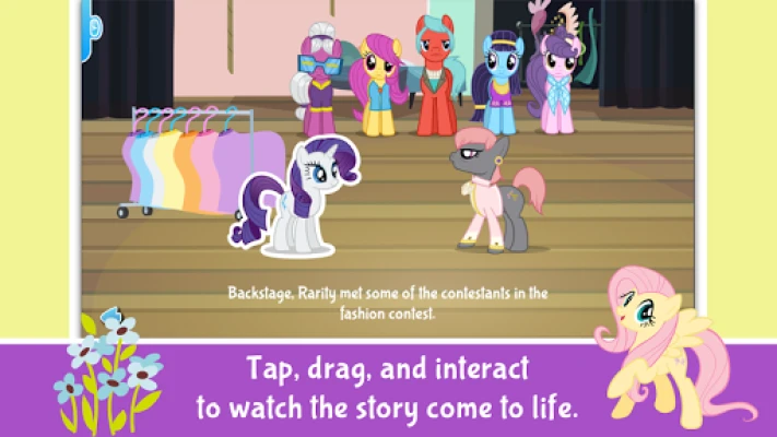 Based on a popular episode from the hit animated series MY LITTLE PONY: FRIENDSHIP IS MAGIC, this whole new kind of interactive storybook app features 18 pages of story, iconic characters, television-quality animation, and interactive dress-up activities perfect for early and emerging readers AND your MY LITTLE PONY fan!