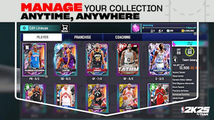 With 2K25 MyTEAM, you can customize and manage your lineup effortlessly. Experiment with different combinations of players, adjust tactics, and challenge opponents with curated rosters. Earn MyTEAM REP and climb the rankings as you complete exciting challenges and games.