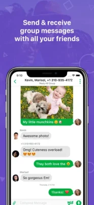 - Free texting (SMS, MMS + group chat) to any US or Canadian mobile number