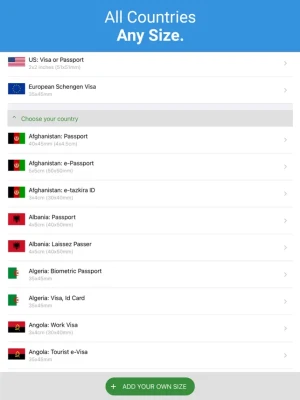 Passport size photo maker is capable of creating official photo sizes for ID, Passport, VISA and License of all countries of the world including the USA, Spain, Germany, France, India, Italy, Korea, and Brazil. All the basic features that are needed to create a compliant passport photo are available for free.