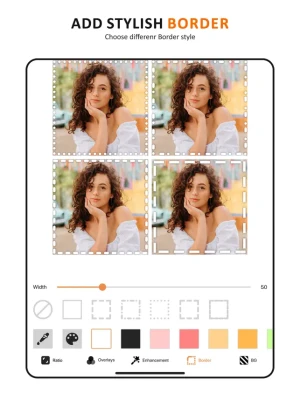 Transform your photos with a variety of filters, infusing your creations with that extra touch of enchantment. Adjust backgrounds with the BG Blur tool and add borders to create stunning visual effects.