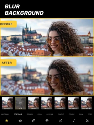 - Unique portrait effects (HDR, studio, mono, stage, detail, color splash, stylize, grain) that are carefully crafted for portrait photos.