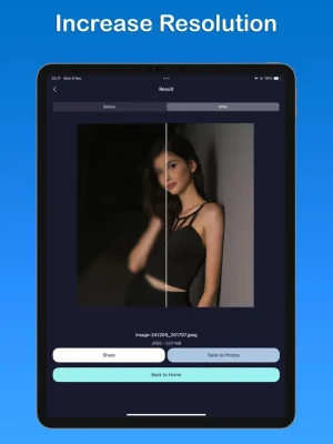 • Seamless Saving: Save your enhanced images directly to your Photos app with just a tap.