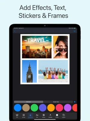 Text and Stickers: Choose from 80+ fonts and 90+ free stickers to make your collages pop.