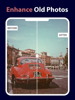 Photo Enhancer AI is a perfect tool for enhancing and restoring your old photos (and memories as well). It uses the the advanced AI image processing algorithm to improve the quality of old photos. No matter if the photo is blurry, damaged, or black & white.