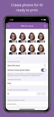 Take a photo and the app will generate a photo sheet with the exact photo size for your driver's license, passport, school card or any other ID you need.