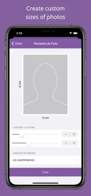 You can customize the photo size for any size you want. Then just take a photo or choose one from your photo library and the app will generate a photo sheet ready to be printed or exported to any app you want. You can choose the number of photos per page and even choose or customize the paper size.