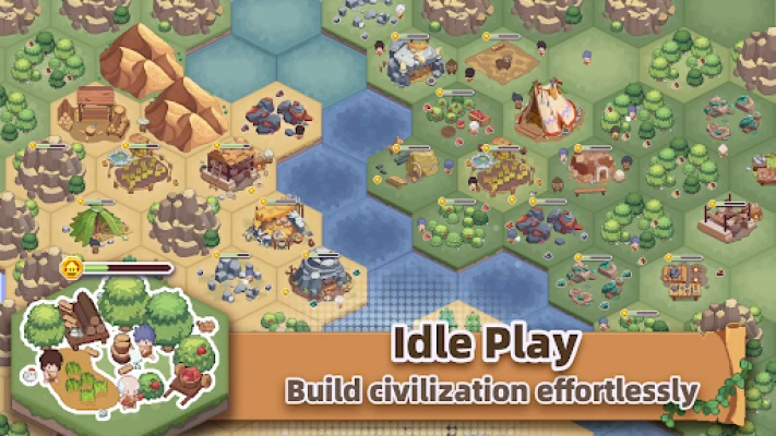 Welcome to 'Pixel Civilization', an idle casual simulation game that takes you on a grand adventure through the epochs of human history! Immerse yourself in a peaceful world focused on growth, development, and innovation.