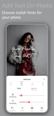 • Text On Photo: Add text on photo with PixelLab's powerful text editor. You can write quotes, captions, slogans, or anything you want on your photos. You can also choose from a variety of fonts, sizes, colors, and shadows to make your text stand out.