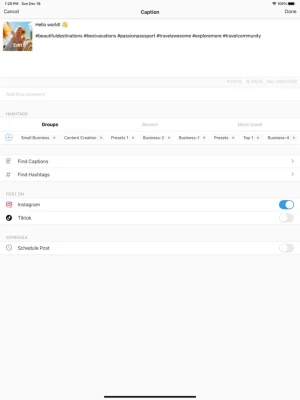 Write your captions in advance and perfect them. Save your hashtag groups within the app and add them to new posts at a press of a button.