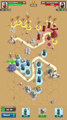 - Real-Time PvP Battles: Face off against opponents in fast-paced matches where you must build defenses and launch attacks simultaneously. Every second counts — react, adapt, and outplay your rival.