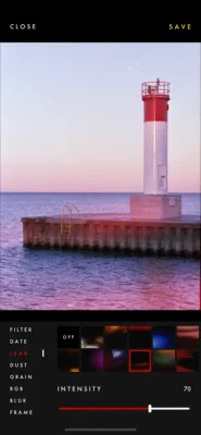Create vintage edits with RE2C and such real effects as grain, date stamp, dust, light leakage, rgb, blur, film frame.