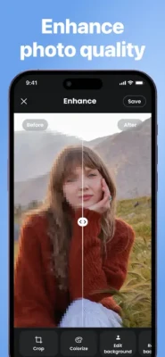 Featuring a user-friendly interface, AI Photo Enhancer (photo editor) allows you to effortlessly enhance the quality, clarity, and overall appeal of your images with just a few taps. Whether you're a professional photographer or simply an enthusiast looking to improve your snapshots, this app provides the tools you need to create stunning visuals and restore old photos free and simple.