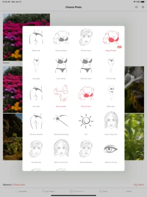 Key features of photo processing: breast augmentation, waist slimming, tummy reduction, cellulite treatment, pimple eraser, wrinkle remover, butt editor, breast augmentation, legs slimming, big and beautiful breasts.