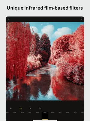 The RNI Aero filters are born from real infrared film. The app comes with a versatile introductory package of free film filters. Additional filters and premium features can be unlocked via in-app purchase.