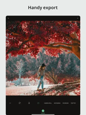 Share your photos to your social networks directly from the app. Supported networks include Instagram, Facebook and Twitter.