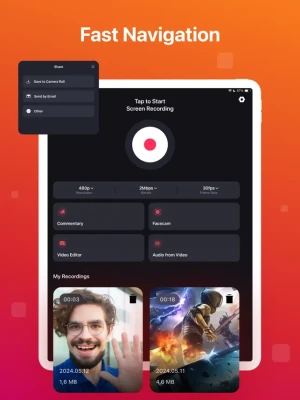 • Record everything: games, video tutorials, apps just in one tap