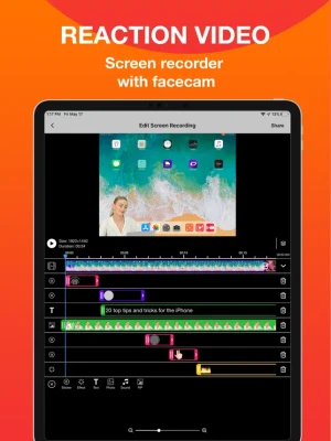 Video reactions is a perfect way to add personality to your video recordings. You can add video reaction to your recordings so your audience can watch you while you play your favorite game, or when simply recording an app demonstration (Perfect to show your friends how to complete a task, or how to achieve that perfect score in a game).