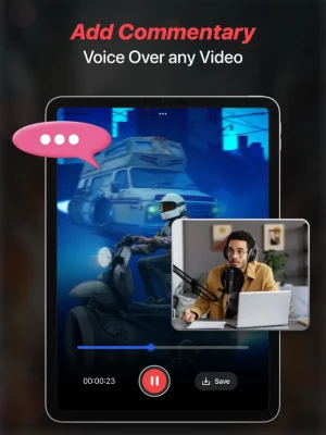 Commentary - Add your comments to recorded videos or record a new one with your views on it and share them on other platforms.