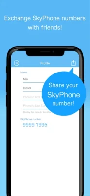 Enter your profile and share your SkyPhone number with friends and family.