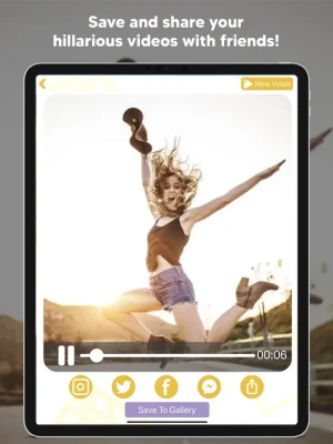 - SAVE your hilarious videos to camera roll or SHARE with your friends on your favorite social networks!
