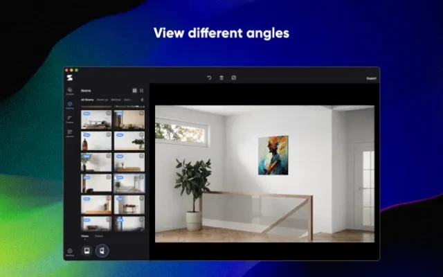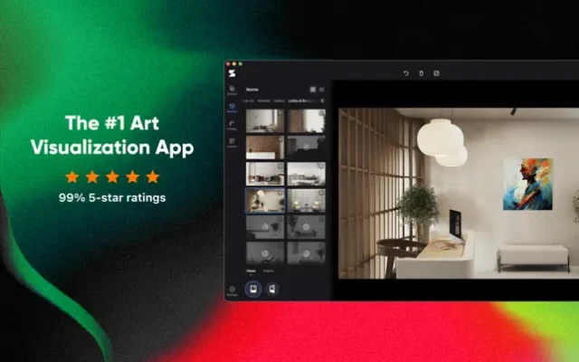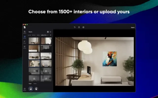 - Visualize artwork in photorealistic room decor