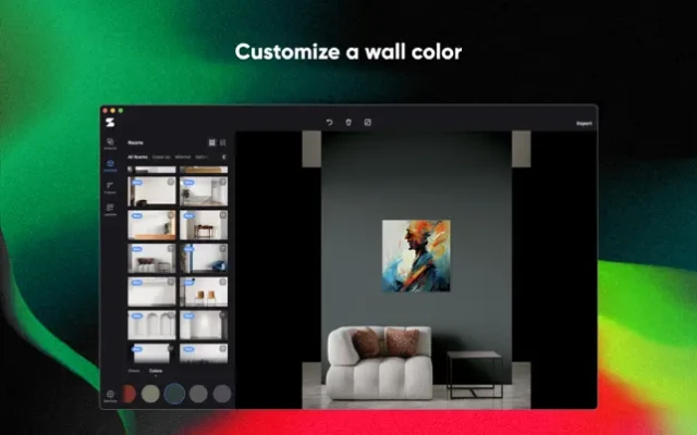 - Customize frames, mats, and wall textures