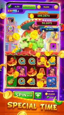 Immerse yourself in the lively atmosphere of Spin Carnival - Frenzy Day, where the energetic strums of a mariachi guitarist set the rhythm for your spinning journey. Set against a bustling Mexican carnival scene, this game blends colorful street decorations with engaging slot action.