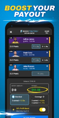 But wait, there’s more—Boom Sports’ 'Pick & Spin' game lets you win up to 500x your entry on any 2-pick play. You won’t find those odds anywhere else in the DFS world!