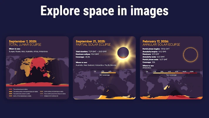 ★Be aware of the latest news from the world of outer space and astronomy. The "What's new" section of our stargazing app will tell you about the most outstanding astronomical events in time.