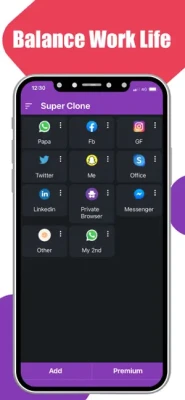 Get more features of super clone, multiple accounts, multi space, dual app, dual space, dual WhatsApp, dual snapchart, dual Instagram, dual app free, dual chat, parallel space, parallel WhatsApp, parallel space for iPhone, 2space, 2accounts, dual account, multi social, dual accounts – parallel space, dual accounts lite, dual apps – multiple accounts, dual account – multi social, 2accounts – dual apps space, dual space: parallel dual apps, clone app, clone phone, whatsapp clone, app cloner, wa clone app with Super clone: Multiple Accounts.