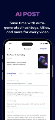And when it's time to enhance and repurpose your content, Supercreator.ai has you covered. Our AI technology can help you create catchy titles for your videos, generate hashtags tailored to your niche and content, and even turn your videos into scroll-stopping written posts. Try Supercreator.ai today and see how easy it is to create professional-quality videos in no time.