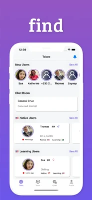 ‣ Set your target language, and find a native speaker. Tabee supports 15+ languages.‣ Chat, practice, learn and meet new people around the globe.