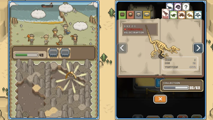Collect many fossils, and aim to create your own wonderful museum with cute pixel art characters that move around!
